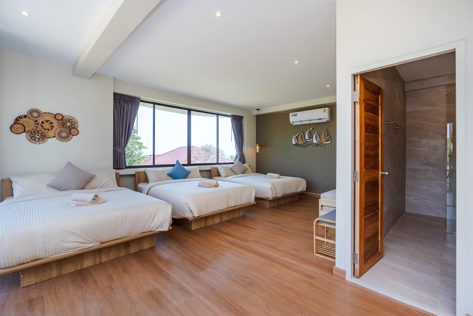 ✅ ห้องนอนที่ 6 : เตียง 5 ฟุต 3 เตียง + เสริม2 (8คน)