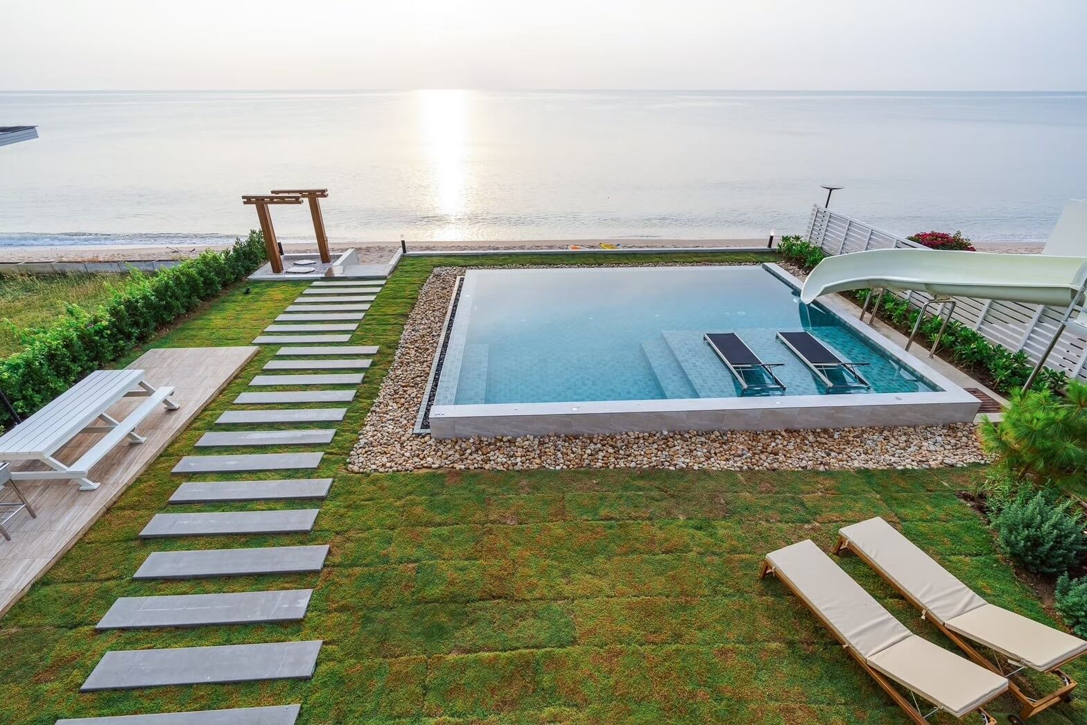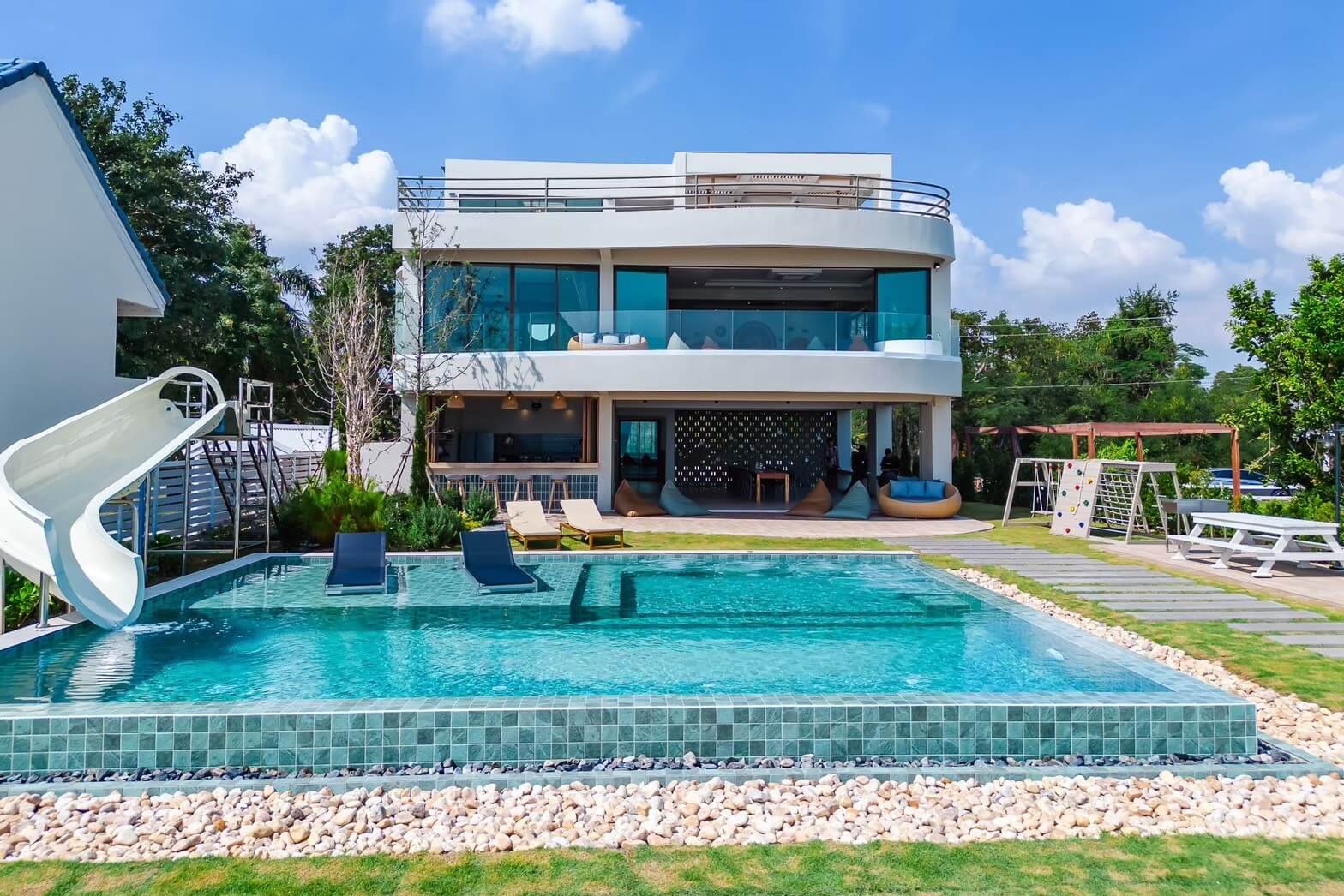 ✅ สระว่ายน้ำ ขนาด 7*8 เมตร พร้อมสไลเดอร์ 8 เมตร