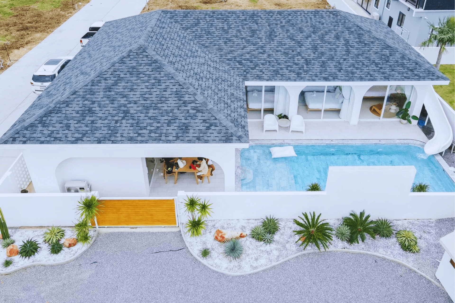 พูลวิลล่าใหม่ มินิมอลแกะกล่องปากน้ำปราณบุรี เหมือนได้พักอยู่ในคาเฟ่เก๋ๆ ตลอดทั้งวัน เพียง 500 เมตร จากชายหาดมาพร้อมกับสระว่ายน้ำ ขนาดใหญและสไลเดอร์และโซนเด็กเล็ก