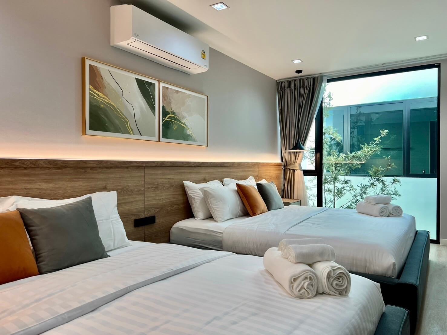 ✅ ห้องนอนที่ 2 เตียง 6 ฟุต 2 เตียง (ห้องน้ำในตัว)