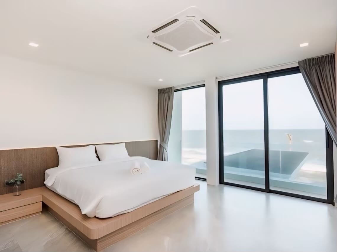 ห้องนอนที่1 เตียงขนาด6ฟุต 1เตียง วิวทะเล